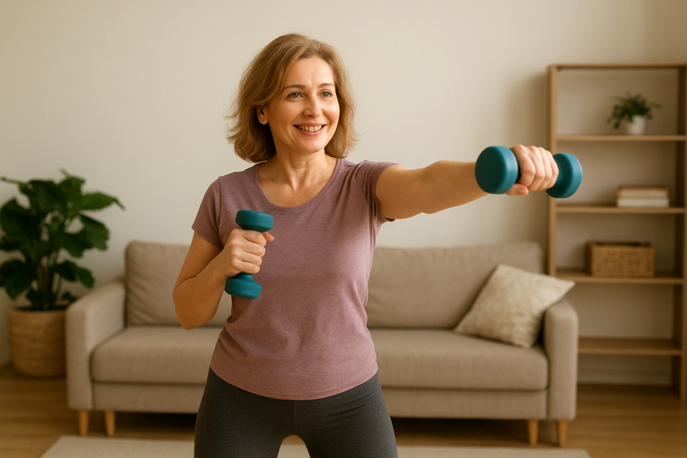 Często myślimy, że po pięćdziesiątce podstawowa aktywnośc fizyczna to spacery. Tymczasem to właśnie trening siłowy jest najlepszym sposobem na zachowanie mięśni i sprawności. Nie musisz od razu iść na siłownię i podnosić sztang – wystarczą gumy oporowe, lekkie hantle albo ćwiczenia z ciężarem własnego ciała.