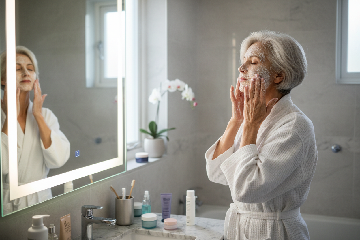 Peeling mechaniczny z drobnymi granulkami jest dopuszczalny, ale należy zachować ostrożność – skóra po menopauzie jest cieńsza i bardziej podatna na podrażnienia. Takie produkty można stosować nie częściej niż raz w tygodniu.