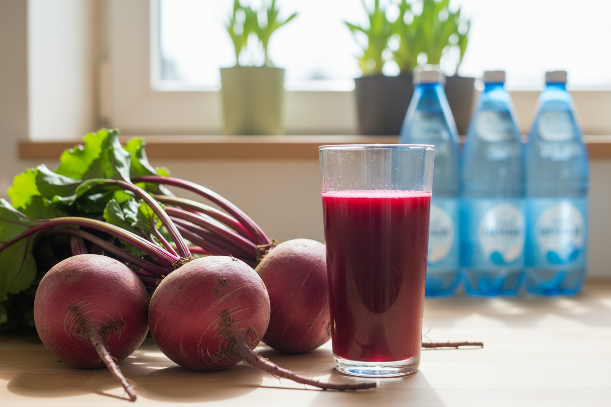 A skoro o piciu mowa, polecam Ci sok z buraka. To świetny naturalny produkt na wsparcie wydolności i ciśnienia krwi. Azotany zawarte w burakach przekształcają się w organizmie w tlenek azotu, który rozszerza naczynia krwionośne. Efekt? Lepsze dotlenienie, mniej zmęczenia, lepsza koncentracja. Szklanka soku z buraka codziennie rano to naprawdę coś, co działa.